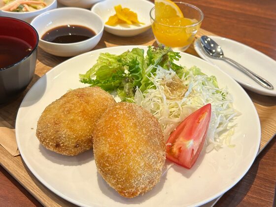大学近くのカフェ「Golden Daze」へ企画を持ち込み、私たちのじゃがいもを使った限定メニューを提案。飲食店の目線や仕込み量、品質管理などを学びながら丁寧に調整を進め、最終的に“学生が育てたじゃがいものコロッケ定食”として提供が実現しました。